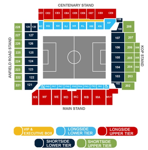 The stadium has four stands: the Spion Kop, Main Stand, Centenary Stand and Anfield Road. The record attendance of 61,905, was set at a match between Liverpool and Wolverhampton Wanderers in 1952.The ground converted to an all-seater stadiumin 1994 as a result of the Taylor Report which greatly reduced its capacity.